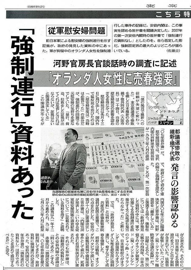 「慰安婦は日本軍とは公的な関係はない」などと2014年の8月20日に報道している「産経新聞」こそ、「歴史から目をそらし」「史実に基づかない報道」をしている新聞なのではないでしょうか。
