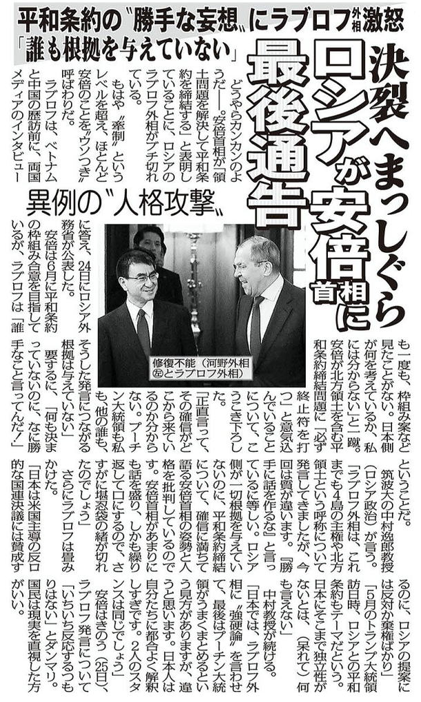一事が万事。ここまで政権に協力的なメディアはつくづく異常だ。その政権が戦争危機を無責任に煽って、政治体制の法整備に着々なのだから、なおさら狂っていると言うしかない。