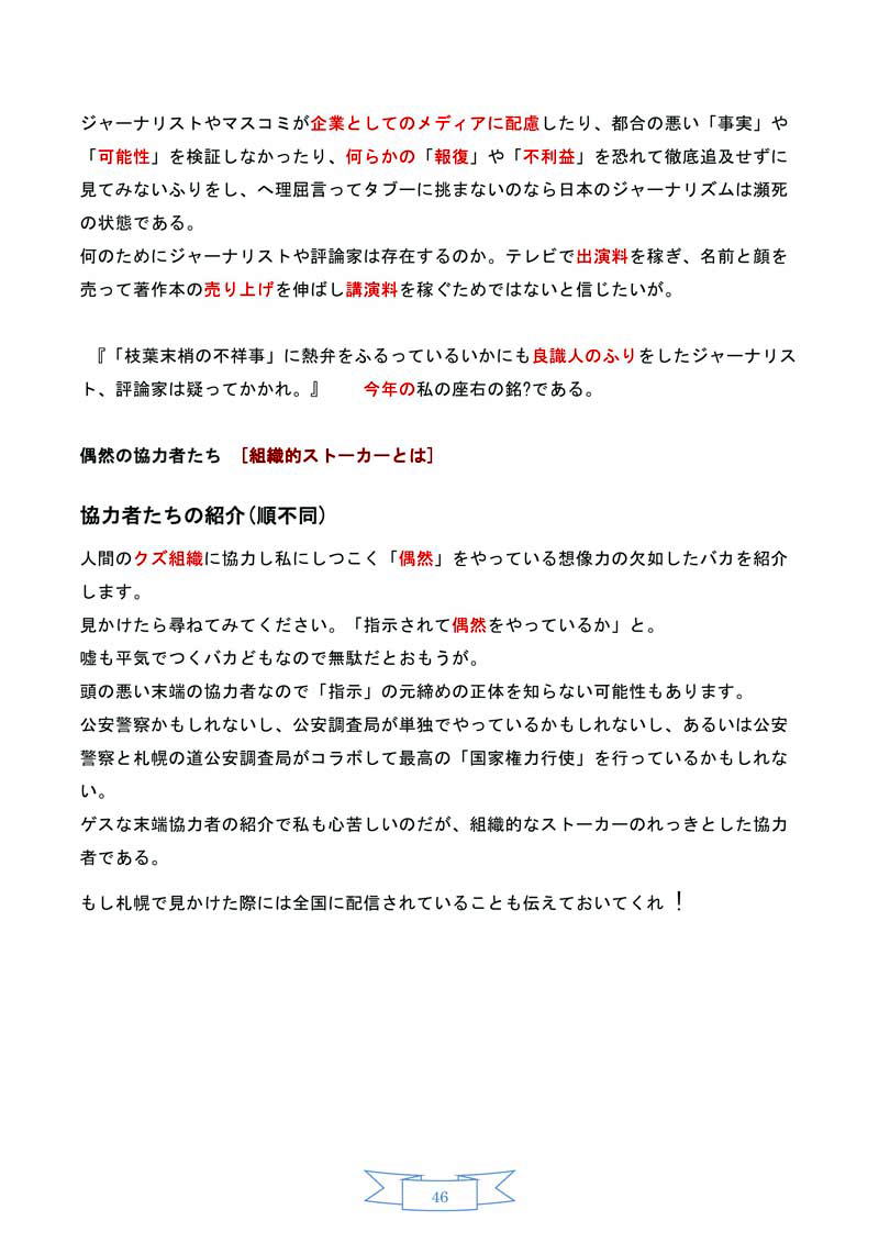 2月以降、衆議院で予算委員会が連日開かれますが、安倍首相出席の下、「特定秘密保護法制に関する集中審議」を開き、法制的観点でのチェックを継続することが必要です。