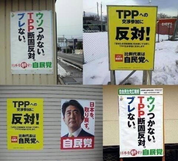 しかし、農業といえば、これまでの自民党の大票田。12年12月の政権復帰も、「ウソつかない。TPP断固反対。ブレない。日本を耕す!! 自民党」という大ウソのポスターを大票田の農村にバラまいたことが大きな原動力になった。