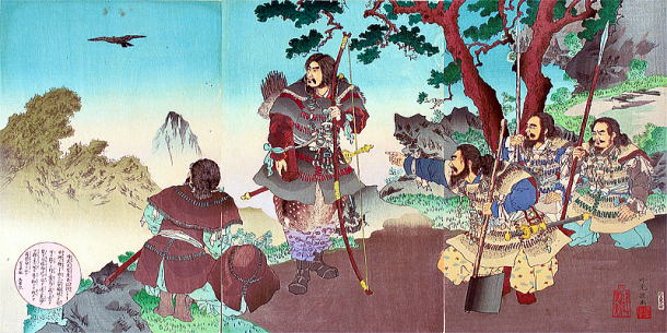 そんな、人々はもっぱら狩猟採集生活で文化といえば土器みたいな時代に、神武天皇は「天下を治めるためには東に行けばいいんじゃないか」と思いついて、大和までの長い旅に出たというのだが、記紀が描く道中の出来事はあからさまに現実味がない。 たとえば、亀の甲羅に乗った釣り人(地元の神)に明石海峡から浪速までの海路を案内してもらったり、突如、助っ人が神のお告げで天の神がつくった剣を持ってきてくれたり、かと思えば神の仰せで八咫烏が吉野まで先導してくれたり、はたまた天の神がやってきて証拠の宝物を見せて神武に仕えたりと、「史実」とみなすには神がかり過ぎている。