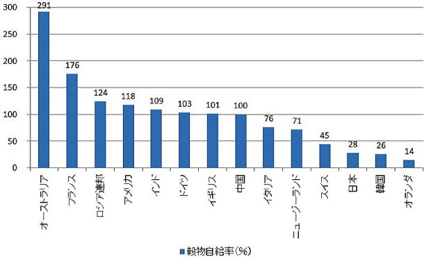 2011年 主要国の穀物自給率(単位:%)