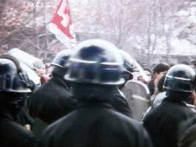 ・一般学生をこん棒と大盾で排除する機動隊 |