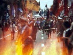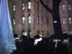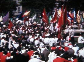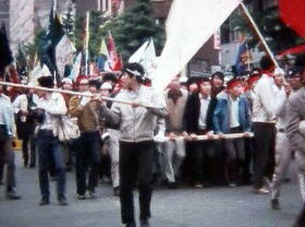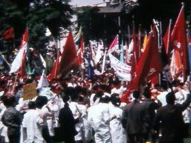 ・過激派による大学封鎖に抗議する教職員と学生。
