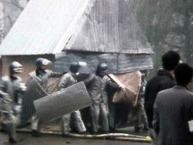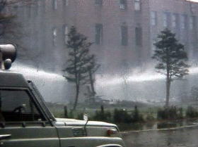 ・自警団の放水作戦により突入を阻止された過激派集団。