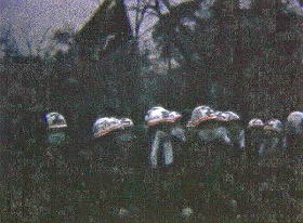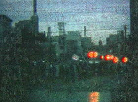・理学部突入を諦めて退散する過激派集団。