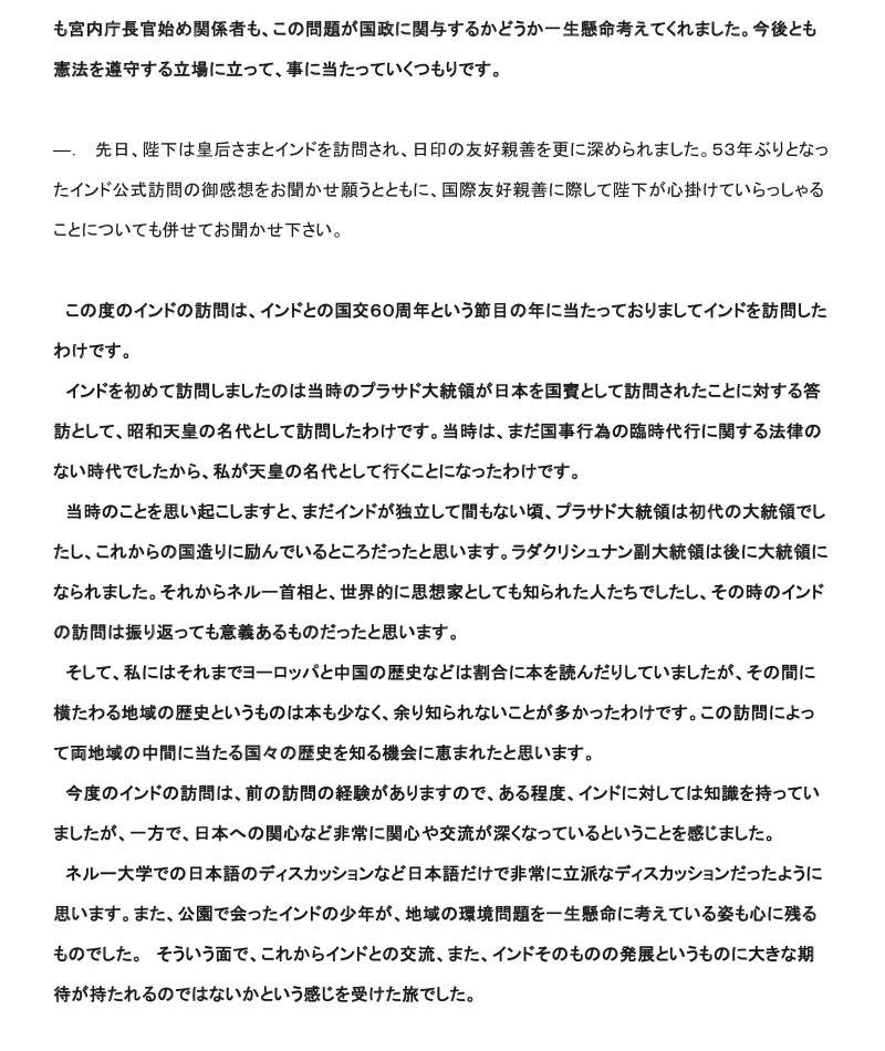 (Imperial Household Agency Press Club) Question
