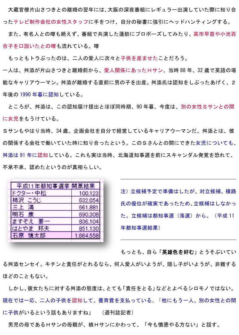 | 99年の都知事選、この頃から金を無心(C)日刊ゲンダイ |
