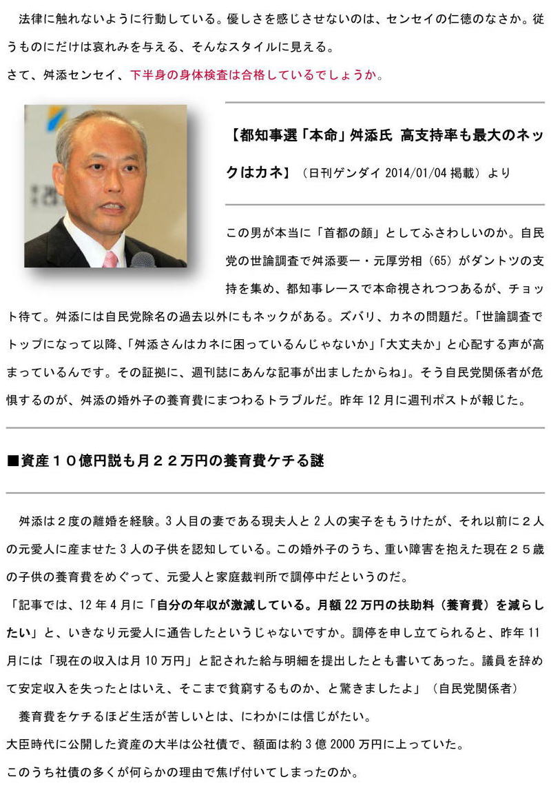 | 舛添都知事(C)日刊ゲンダイ |