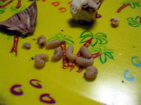 更に、まわりにいた、たくさんの”メシ粒らしきもの”が、一斉にニョロニョロと動き出したのには腰が抜けました。オェーッ!。なんと、それはウジ虫だったのです。