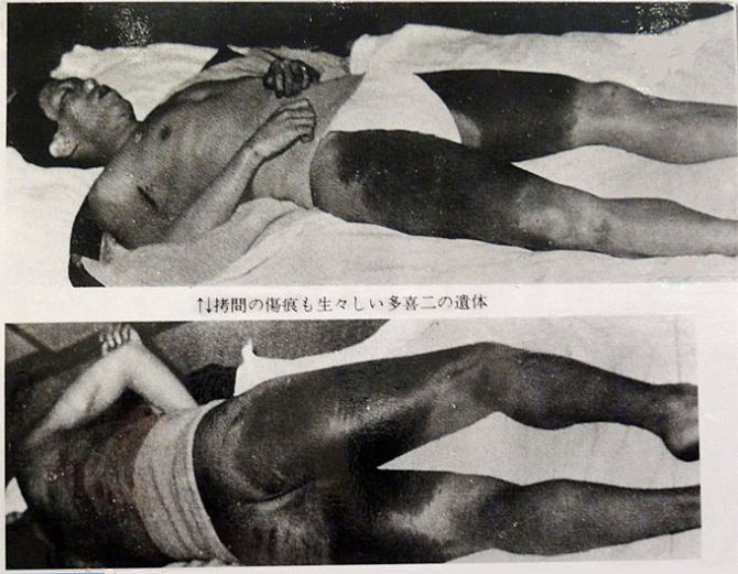 「殺しても、病気で死んだと報告すればそれまでだ」と脅し、罵声を浴びせこん棒で殴った。午前・午後 晩から11時。引き続いて午前2時ごろまで、交代で蹴ったり殴った。