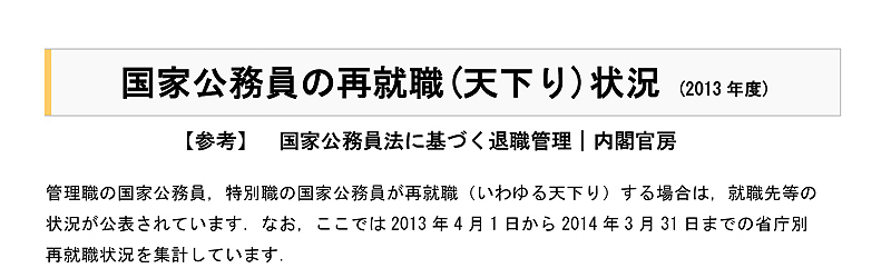 国家公務員の再就職 (天下り )状況 (2013年度) 全省庁(PDF)