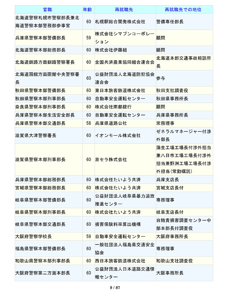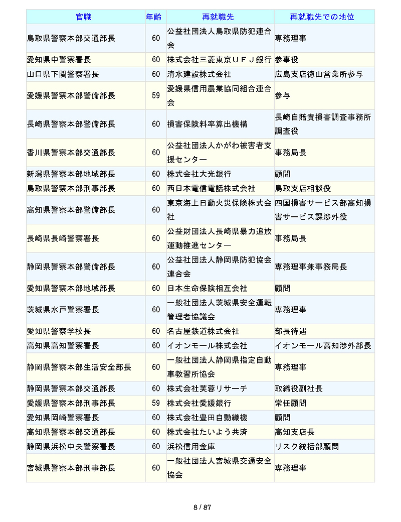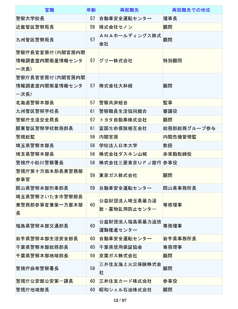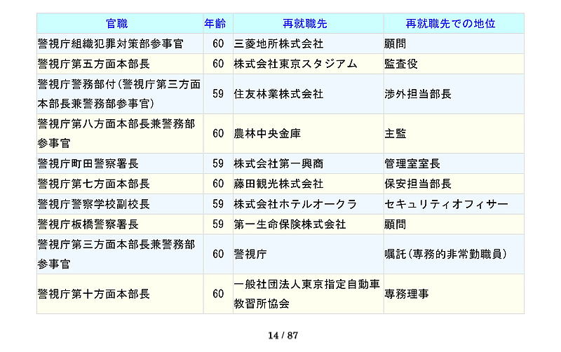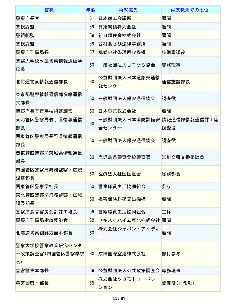 公安・警察・検察職員の天下り(再就職) 全リスト