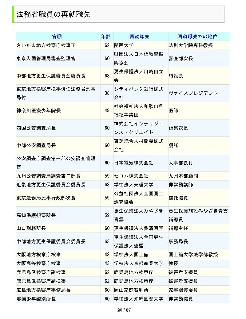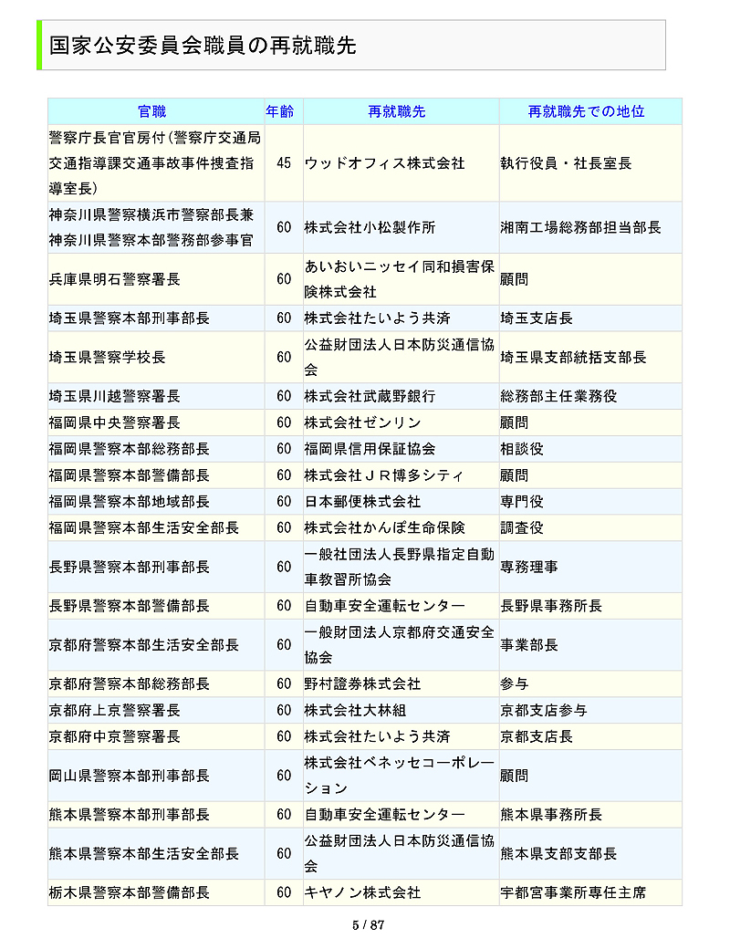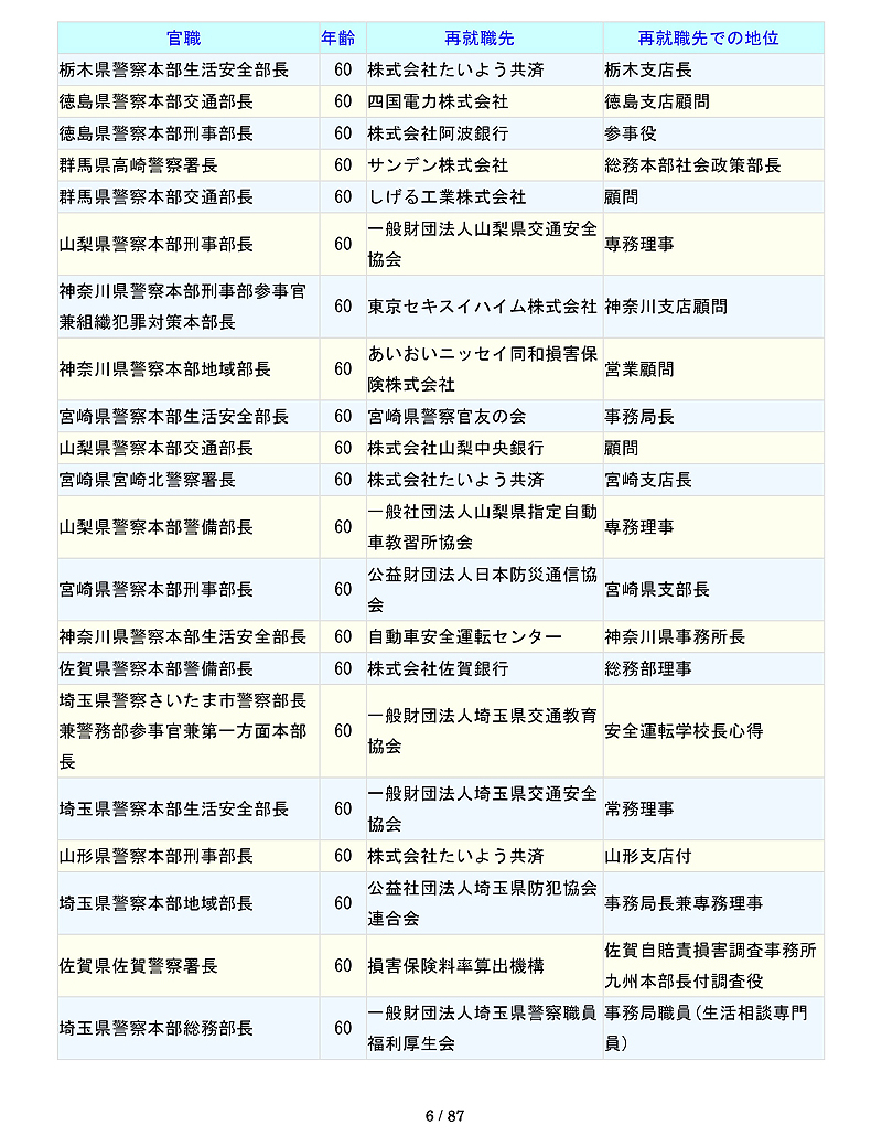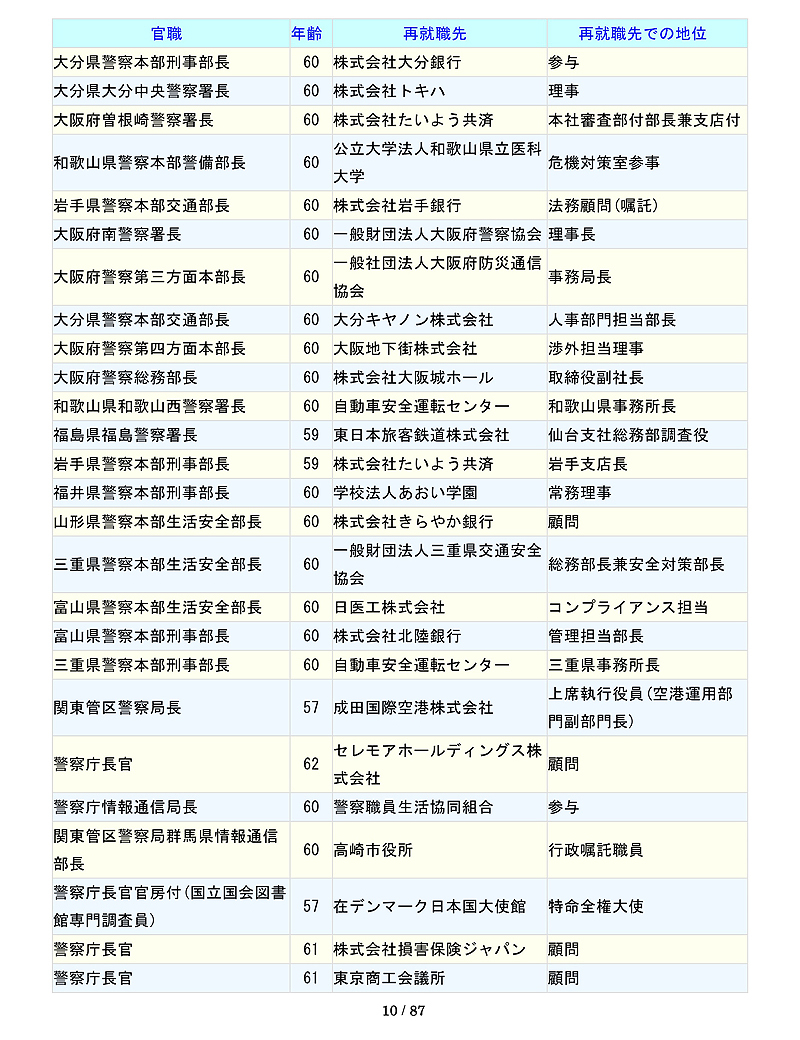 公安・警察・検察職員の天下り(再就職) 全リスト