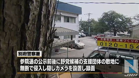 この事件は、大分県警別府警察署の捜査員2人が、参議院選挙の公示前、野党候補を支援する団体の敷地内に不法侵入し、隠しカメラ2台を設置していたものです。