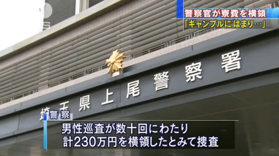 【出典】「ギャンブルやめられない」警察官230万円“横領” ANNニュース 2016/01/23