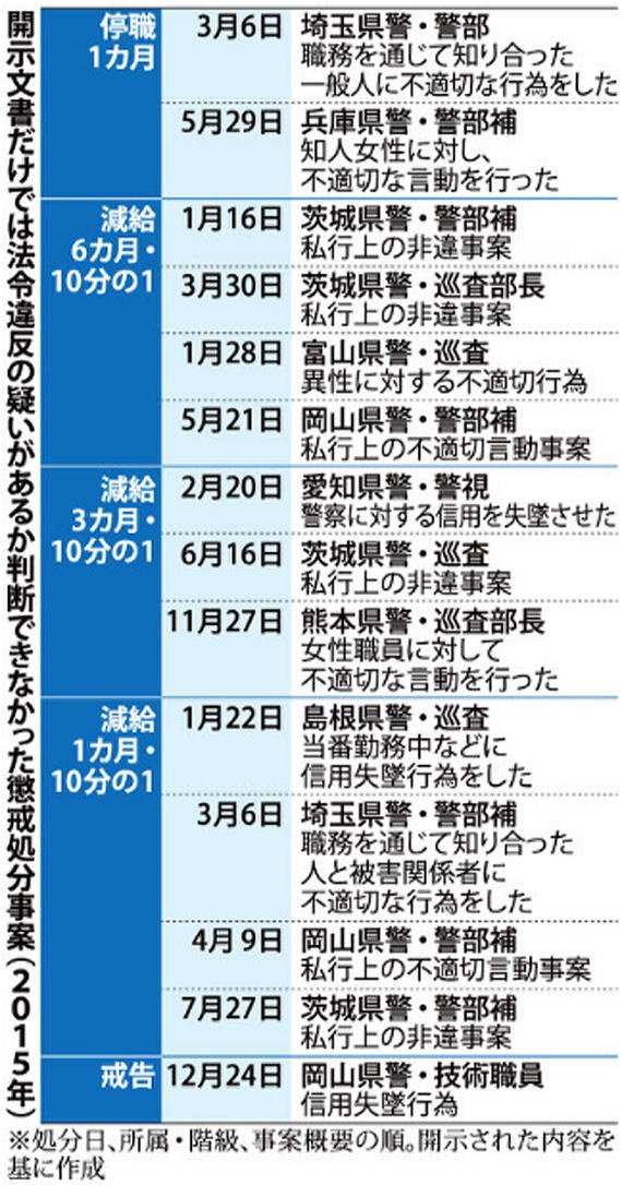 ■1月28日 <警察職員> セクハラや盗撮…処分で一番多い「異性関係」