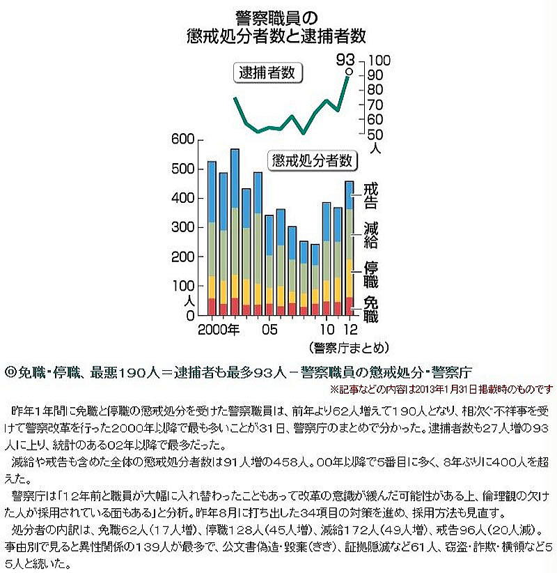 【出典】警察の懲戒293人=昨年、文書偽造減る 時事通信 1月28日(木)10時11分配信
