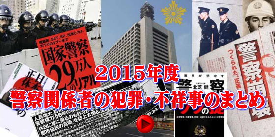 2013年・2014年と警察の犯罪、不祥事について淡々とまとめてきました。軽微なものから重犯罪まで様々ですが、ほぼ毎日といっていいほど起きる警察官による不祥事については私たちが記憶しておくのは意味があると感じています。今年も警察官の不祥事は早いペースで起こっています。