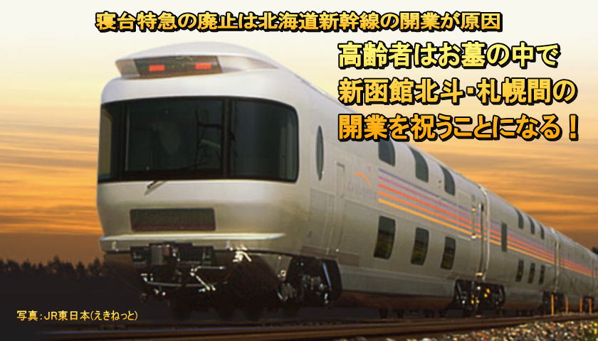 北海道新幹線(新青森・新函館北斗間 2015年度末)の開業に伴い、絶大な人気があった寝台特急トワイライト・エクスプレスや北斗星が廃止された。また、北海道新聞社のウェブサイトに、カシオペアの9月廃止が報じられている。