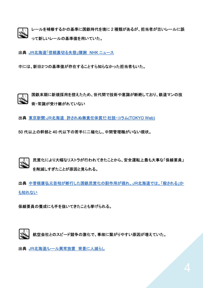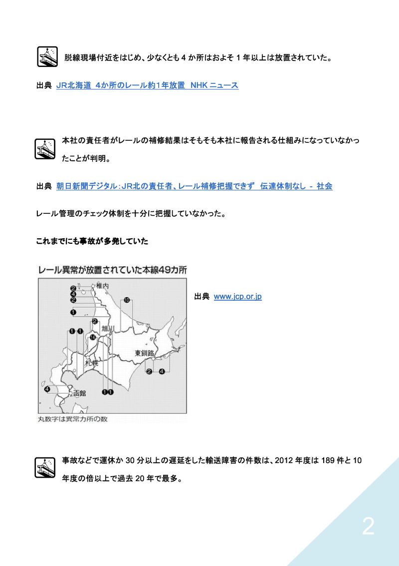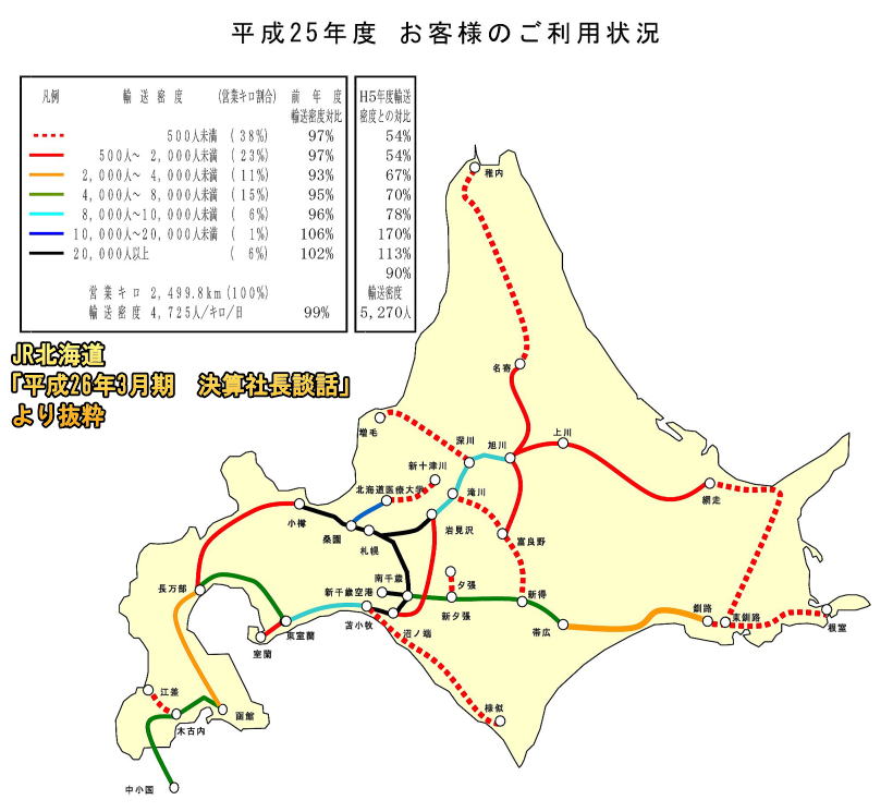 2.旧・国鉄幹部の言によると、北海道新幹線の場合は「絶対に黒字にならない」と断言している。その根拠として、道民の生活水準の低下に加えて、公務員、例えば北海道大学の場合、本州方面への出張については旅費節減のため鉄道の利用を認めていない。民間各社も安い運賃の方を選ぶ。