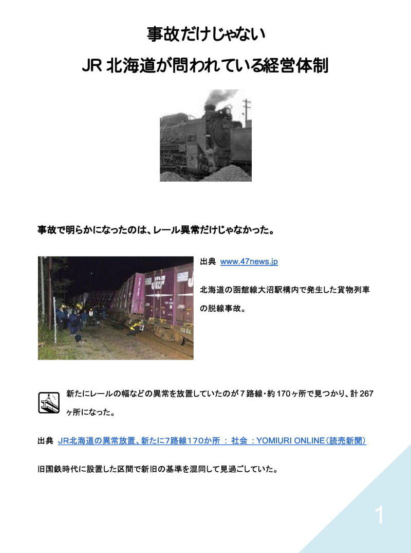 JR北海道は、石勝線トンネル火災事故(資料7) などに見られるように事故続きであり、青函トンネル内で、もし「放射能汚染がれきの”自然発火”や、機関車や貨物車の”整備不良で起こる発火”」が原因で、貨物列車が火災を起こしたら、大量の「放射性がれき」が燃焼し大火災になるだろう。