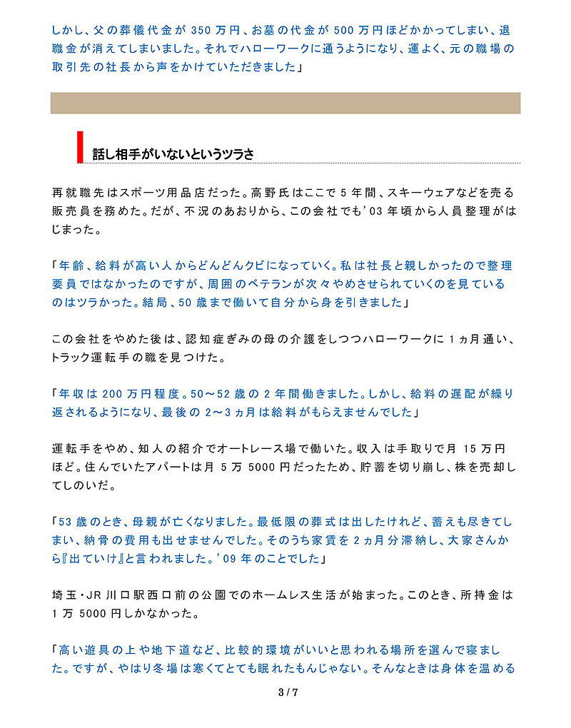 たとえば、同書で紹介されている新潟県出身の男性・加藤さん(76)は、県内の公立高校を卒業して以降、自衛隊や飲食店、介護職など仕事を転々としてきた。「ところが、40代にさしかかるとき、重大な転機が訪れる。一番働き盛りのこの頃に、両親が相次いで病気に倒れ、介護が必要な状態になってしまったのだ」。