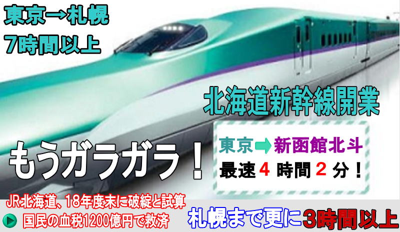 北海道新幹線の開通は、青函トンネルの膨大な額の赤字を解消する起死回生の策でもある。考えうる解決策としてはその程度しかないが、これにも大きな疑問がある。更に、これからは格安航空会社(LCC)の時代であり、一段と北海道新幹線の赤字経営に拍車が掛かるに違いない。